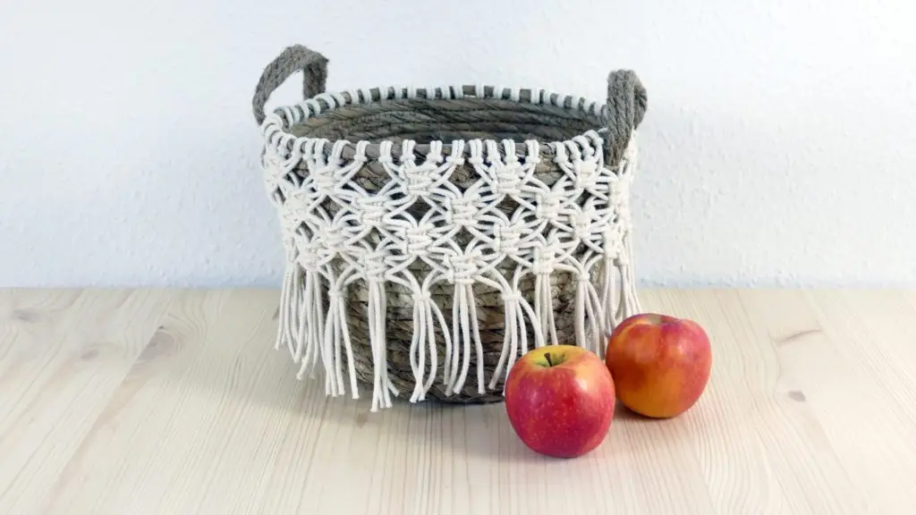 Hanging macrame basket tutorial. DIY Practical and useful wall decor. Can be used for kitchen and bathroom accessories or as a plant hanger. Beautiful pattern for various macramé projects, such as bag..